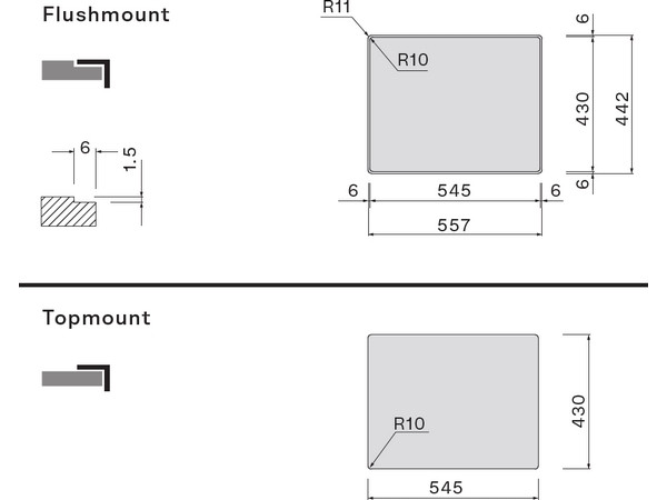 • Радиус внутренних углов 12 мм.