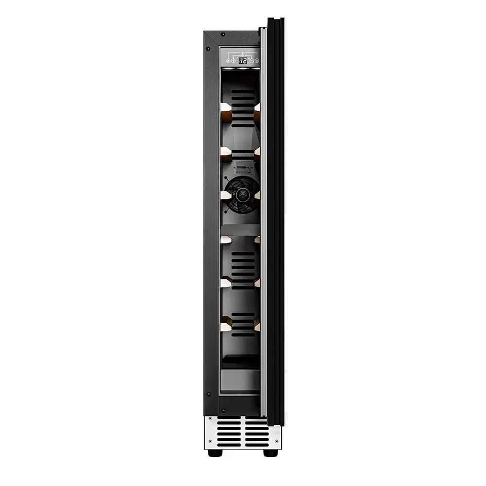 Винный холодильник Meyvel MV9NH-KWT1 имеет одну температурную зону, в которой можно разместить бутылки и единовременно выставить только одну комбинацию настроек. Он встраивается в нишу, что удобно, если у вас ограничен метраж помещения. Благодаря компактным размерам данная модель — отличный выбор для офиса, гостиничного номера. Количество бутылок, которое можно разместить с учетом полной комплектации и из расчета объема бутылки 0,75 л, — 9 шт.